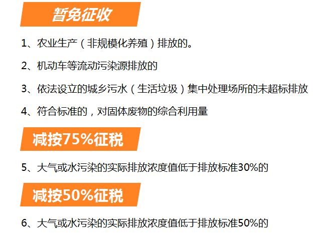 大气或水污染:(《环保税法》第十三条)纳税人排放应税大气污染物或者水污染物的浓度值低于国家和地方规定的污染物排放标准30%的,减按75%征收环境保护谁。纳税人排放应税大气污染物或者水污染物的浓度值低于国家和地方规定的污染物排放标准50%的,减按50%征收环境保护税。