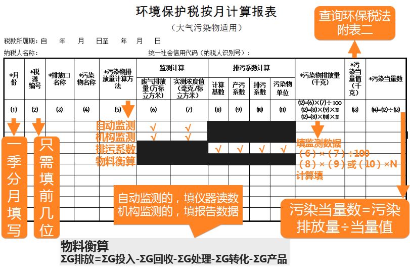 1、申报前,纳税人需自行计算每一排放口或没排放口的应税大气污染物,从大到小前三项污染当量数再填表。(环保税法第九条)
