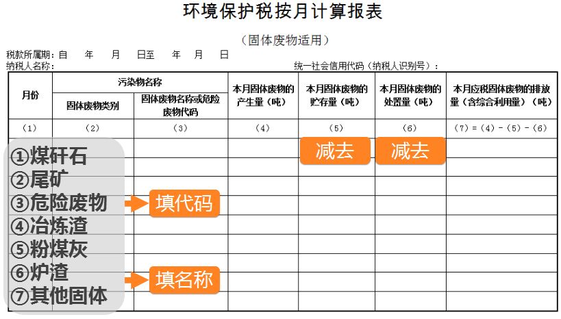 4. 环境保护纳税申报计算表(附表三)(固体废物适用):适用于污染物为固体废物的申报计算。