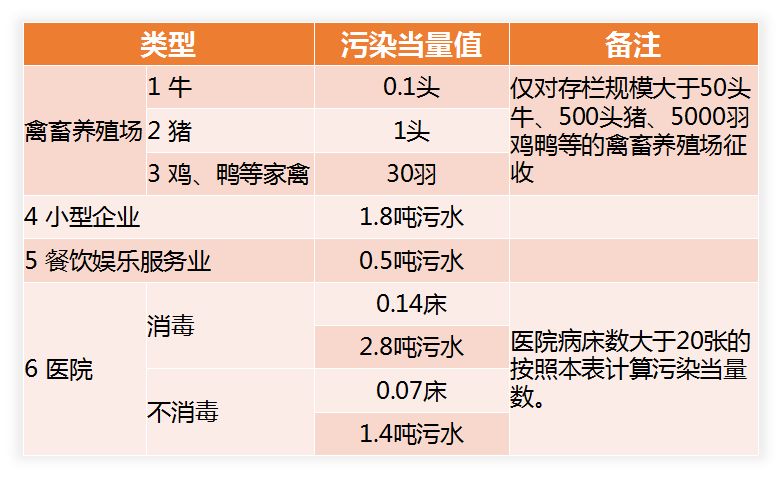 备注:同一排放口的化学需氧量、生化需氧量和总有机碳,只征收一项。