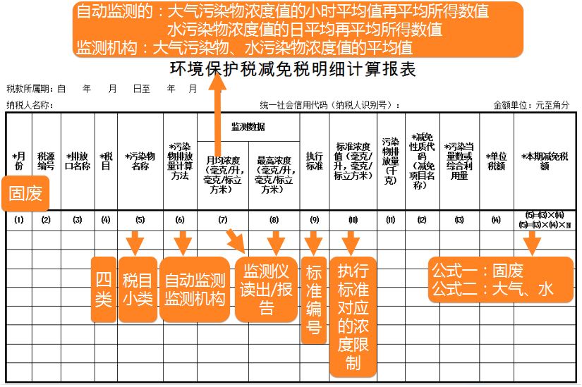 6. 环境保护纳税申报计算表(减免税明细):适用于环境保护税减免税的申报计算。