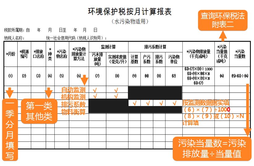 3. 环境保护纳税申报计算表(附表二)(水污染物适用):适用于污染物为水污染的申报计算。