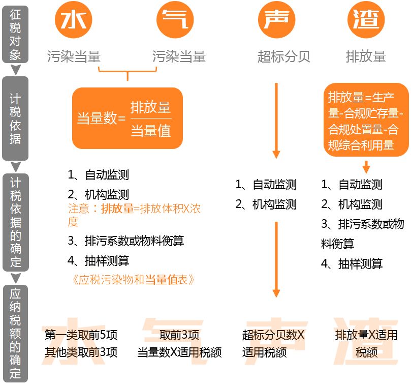 3、应税大气污染物、水污染物、固体废物的排放量和噪声的分贝数,按照下列方法和顺序计算: